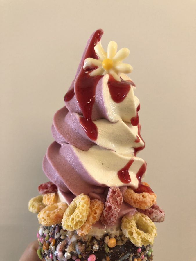 なんと、ほかのソフトクリームよりひと巻増量の4巻半! 食べ応えたっぷりですが、フランボワーズがさっぱり味なので、ペロッといけちゃいます。