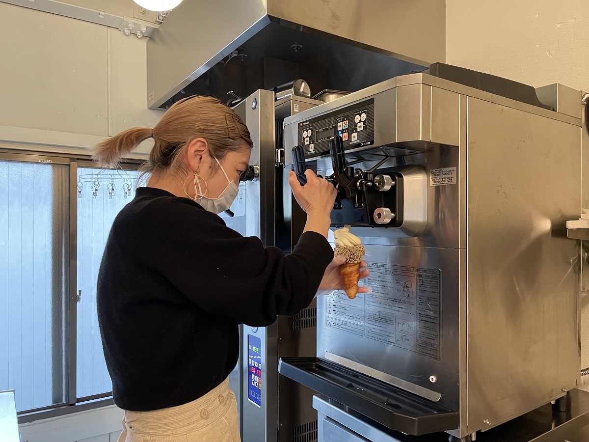 ソフトクリームマシンからソフトクリームが出てくるところを見るのも、ワクワク!