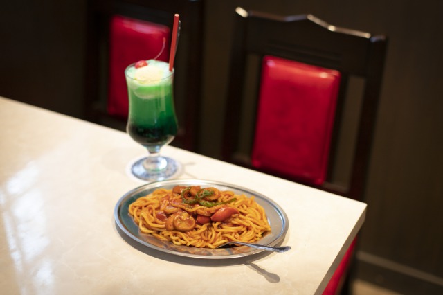 そんな空間で味わえるメニューも、レトロでエモいものばかり。なかでもたくさんの人がセットで頼む王道コンビが、「スパゲッティ・ナポレターナ」(90園)と「クリイムソーダ」(50園)です。「スパゲッティ・ナポレターナ」は、北海道産小麦のもちもち太麺に、隠し味のバターでコク深い味わい。ケチャップに少し加えている、隠し味のソースもポイントです。