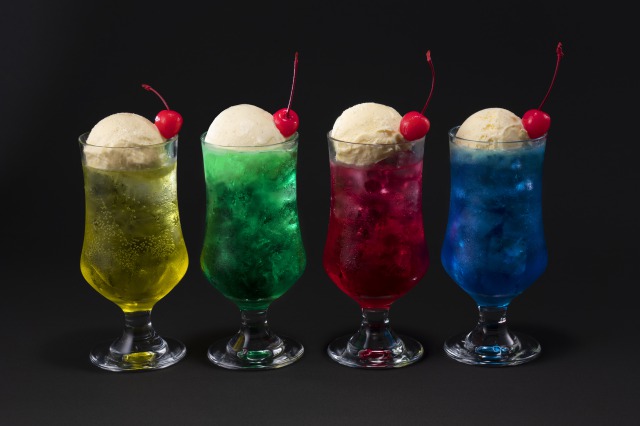「クリイムソーダ」は王道の「メロン」に加え、「檸檬」、「苺」「青空」と全4種類を用意。鮮やかな色味は写真映えにもってこいです。撮影のために4つまとめて頼むツワモノも!