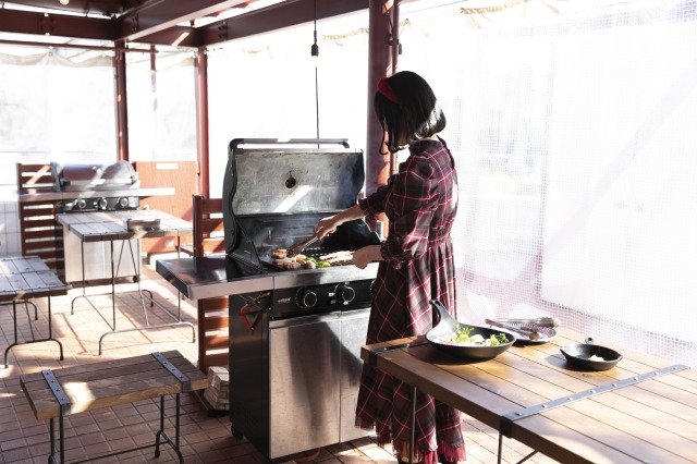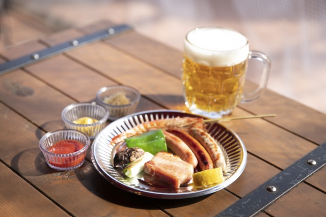 続いてご紹介する「ビヤホール 舶來グリル」は各席にグリルロースターが設置され、バーベキュー感覚で食事が楽しめる屋外ビヤホール。オープンエアのさわやかなロケーションで自分たちでワイワイ焼きながら、ジューシーな肉や魚介が味わえます。
