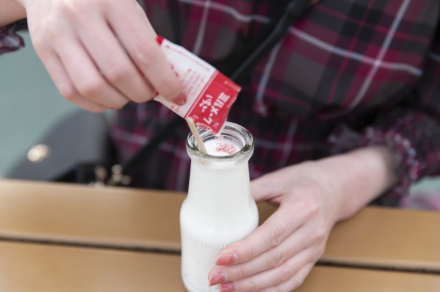 商店街を飛び出して「レッツゴー!レオランド」にあるのが、軽食・売店 「ミルクホール」。牛乳にイチゴやバナナなどの粉末を入れて味わう懐かしのドリンク「ミルメーク」(20園)に挑戦してみて。