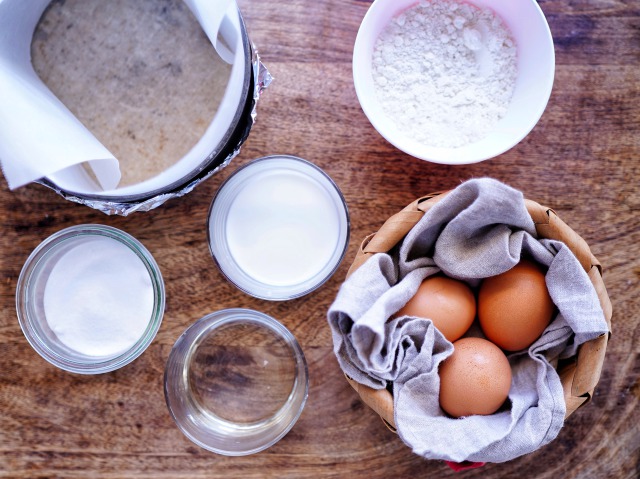| サラダ油(もしくは太白ごま油)…40g 牛乳…50g 薄力粉…50g 卵…3個 グラニュー糖…50g 飾りのいちご…適量 市販のメレンゲ…適量 アイス、生クリーム等お好きなトッピング…適量 |