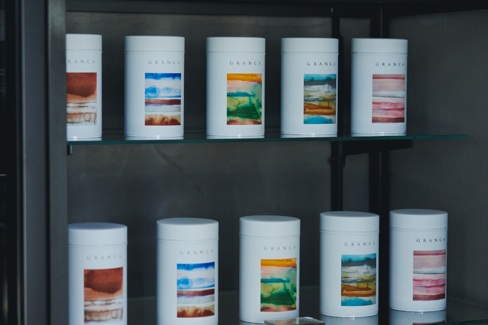 こちらで扱っているコーヒーは、生産者の暮らしと自然環境保護の力添えとなる、独自の基準を満たした「GRANCA(グランカ)」と呼ばれるエシカルコーヒー。これらの銘柄のブレンドを中心に8種類のコーヒーが楽しめます。店内に並べられた、保存缶のデザインもカラフルでかわいい!