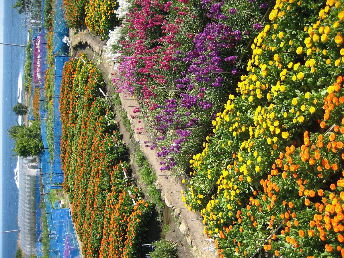 地元の花農家さんたちが集まって営む花摘み園。栽培している花は7種類ほどで、花の最盛期には花のじゅうたんのような光景が見られます。花畑の周りを散策するだけでも楽しめます。