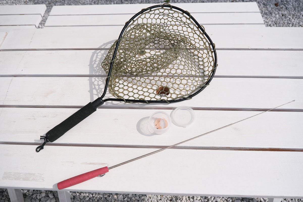 アジの釣り堀体験で使用する道具は、竿と糸、針、エサ、そしてネットだけです。道具のレンタルも料金に含まれているので、手ぶらで訪れても大丈夫!