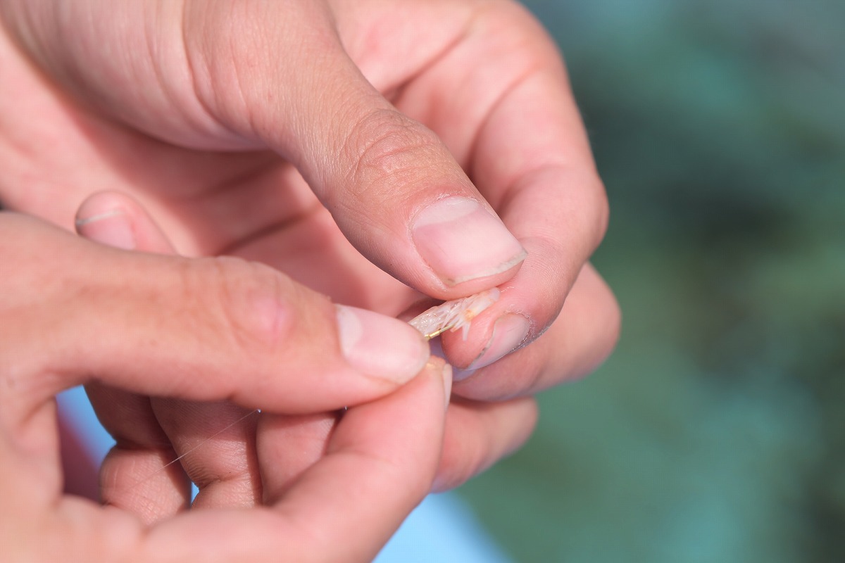 エサの付け方もレクチャーしてもらえるので安心。早速、釣りを始めましょう。