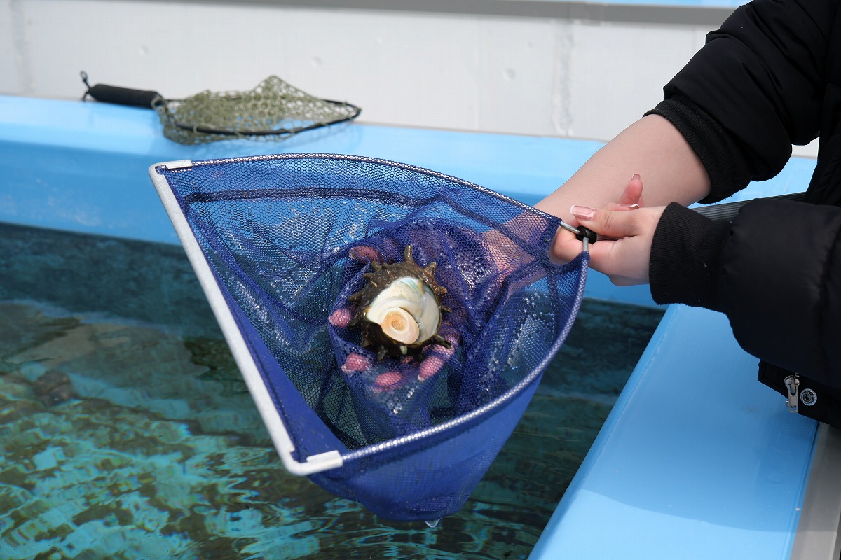 水槽には、サザエやアワビ、ホンビノス貝なども泳いでいて、自分で捕まえるのもお楽しみ。追加フードでもセットでも、注文内容に水槽内に泳いでいる魚介類があれば自分で獲ることができます。BBQセットに含まれていないものは、単品で追加して食べたり、持ち帰ったりしてもOK!