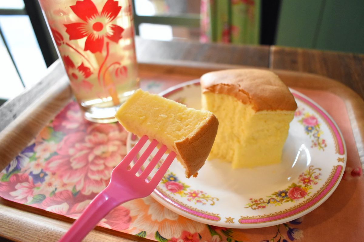 手作りの台湾カステラは、ふんわりきめ細かい生地で、口の中でしゅわっと消えていくような軽い食感が特徴です。卵のやさしい味わいも感じられて、あまりのおいしさに食べる手が止まりません。