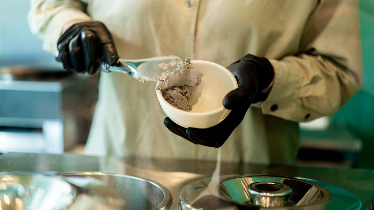 例えば「黒ごまジンジャー」には、香川県の小豆島で育てられたオーガニックショウガからシロップを作る際に出る搾りカスを使用しています。それをカリカリに乾燥させて、黒ゴマのジェラートとブレンド。生姜の香りと適度な辛みを出しつつ、クッキーのような心地よい食感になるよう仕上げています。おいしいだけじゃなく、食物繊維が豊富なので体にもよさそう♪