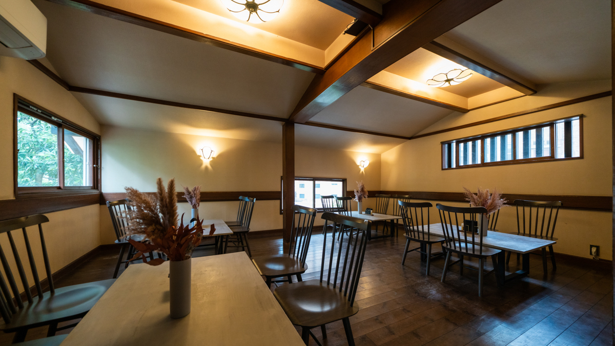 2階はプライベート感のあるゆったり広々な空間。陽射しが心地よい1階席やテラスも魅力的ですが、公園散策中にひと息つくならライトダウンされた隠れ家っぽい場所も魅力的。会話にも花が咲きそうな落ち着いた雰囲気です。