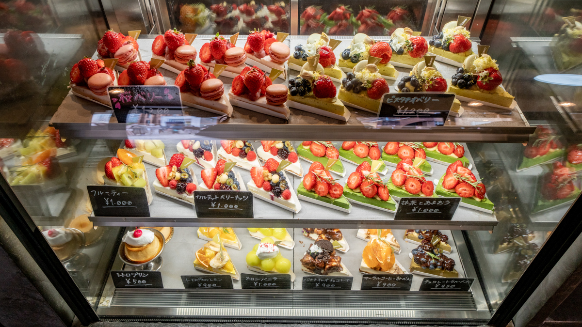 ショーケースにずらっと並ぶ、まさに「#美しすぎるチーズケーキ」。季節限定のシーズナルを含めて10種類ほどを常時揃えているそうです。
