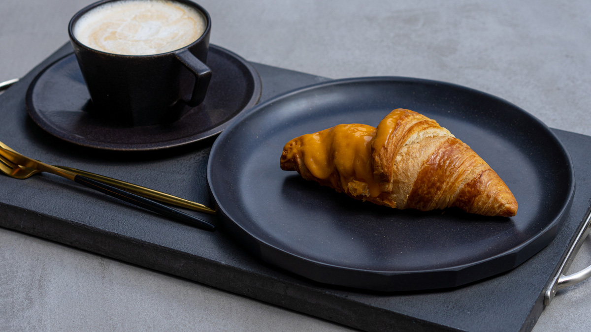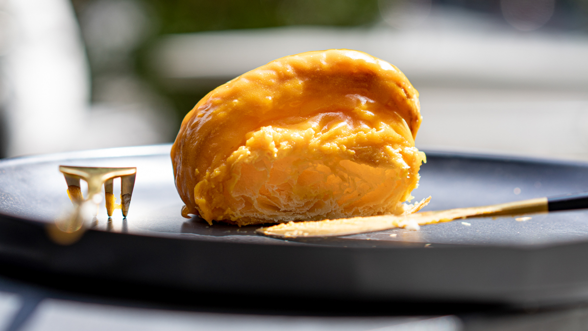 マンゴーフレーバーのチョコレートでコーティングされたクロワッサンは、南国らしい果実感が漂います。きっと力強い太陽のもとで育ったマンゴーを使っているのでしょう。よく晴れた日のテラス席で楽しむのには最適な味わいでした。
