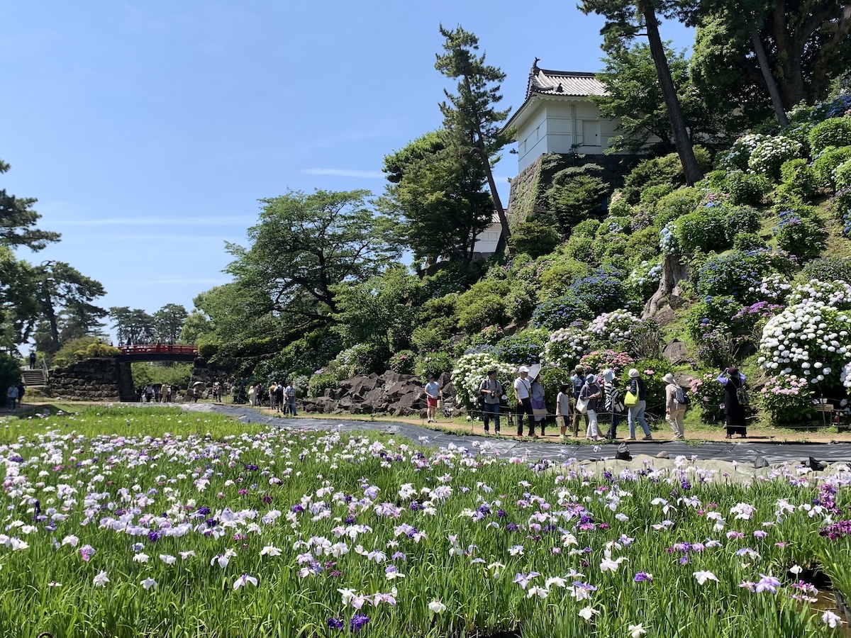 【神奈川】アジサイとハナショウブの競演/小田原城あじさい花菖蒲まつり