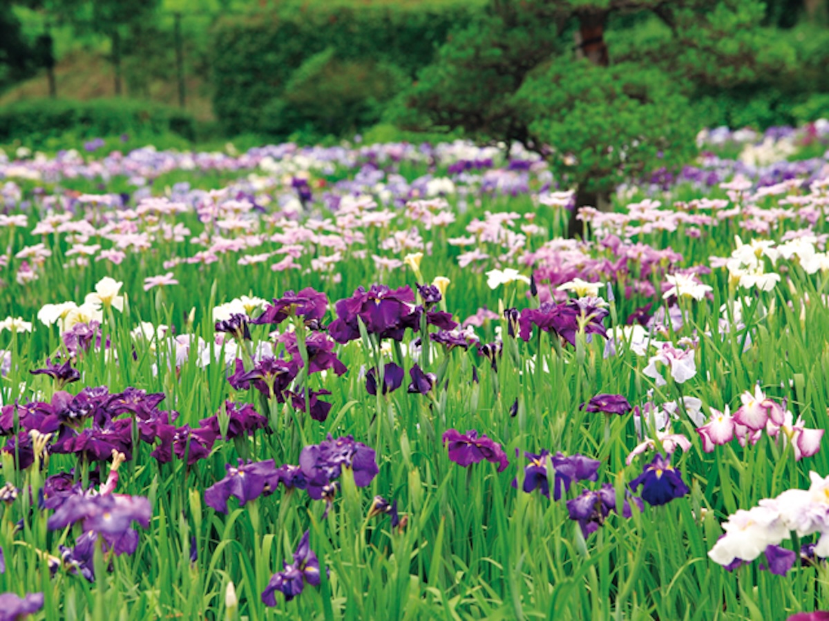 6月にはハナショウブの開花を祝う「花しょうぶまつり」を開催し、伝統装束を着て行う花摘みがみどころです。ハナショウブの他にも、11品種、250本の「フジ苑」や「しゃくなげ苑」で1年を通して花を楽しむことができます。
