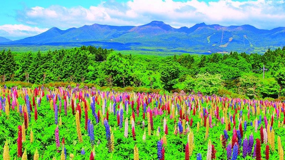 標高600mほどの高原に広がる花畑が見られるのは栃木県の「那須フラーワールド」。大地をキャンバスに見立て、色とりどりの花で描いた「那須花(ナスカ)の地上絵」は必見です。
