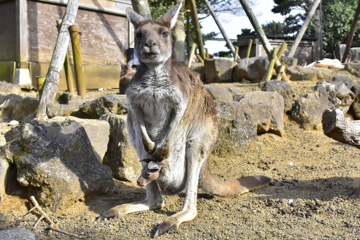 2022年2月14日(月)と 2月28日(月)に、「カンガルーの丘」でクロカンガルーのお腹から赤ちゃんが顔を出しました。ほかにも、1頭の母親の袋の中で赤ちゃんが育っています。暖かい日には赤ちゃんが頻繁に顔を出す姿が見られる予定です。