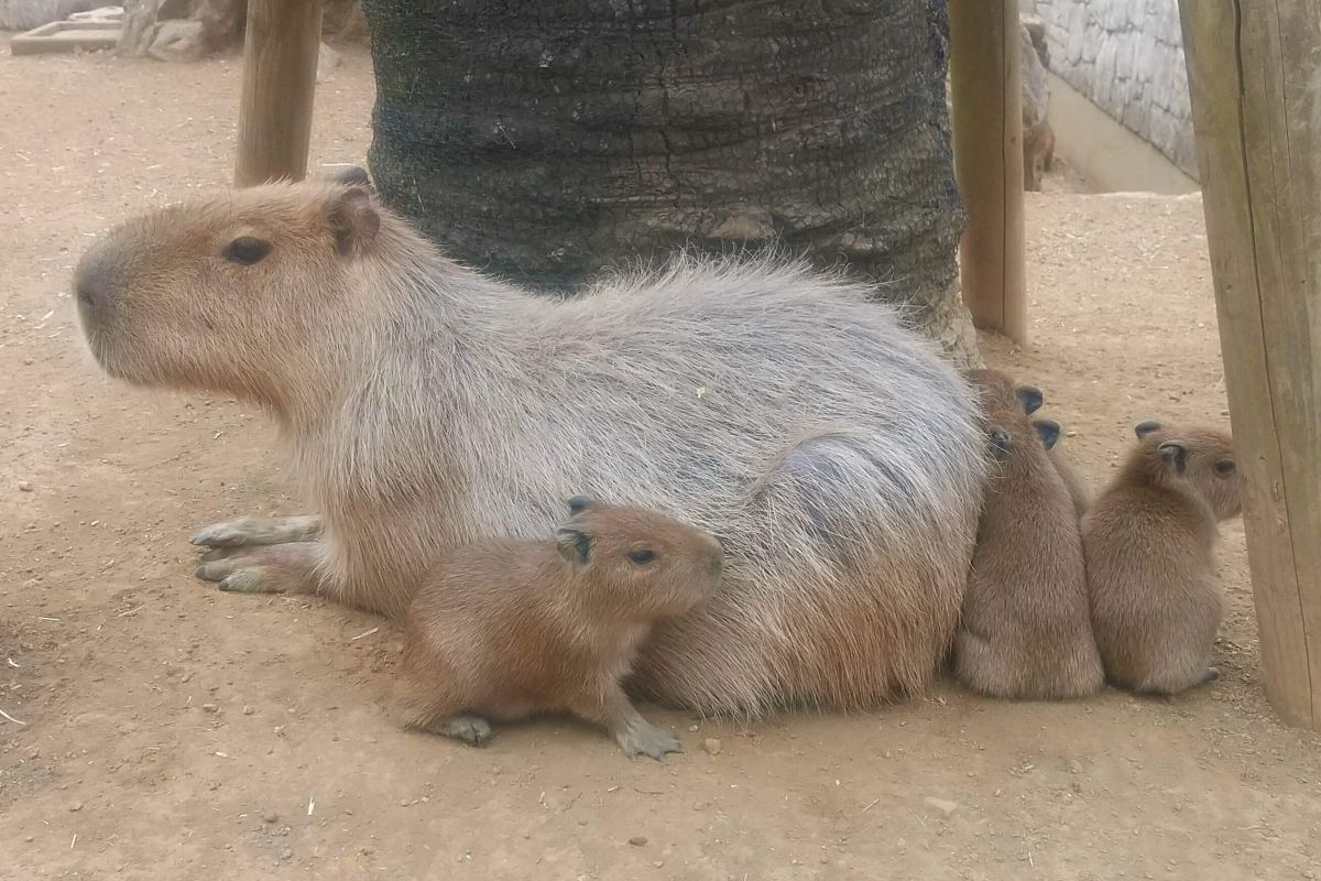 伊豆シャボテン公園で大人気のカピバラ。2012年の冬に30周年を迎えた「元祖!カピバラの露天風呂」は、伊豆の冬の風物詩としても大人気です。そんな「カピバラの露天風呂」展示場では、2022年3月6日(日)に、父「ふたまる」と母「チーニ」の間に1頭、さらに3月15日(火)には父「ふたまる」と母「ゆげ」の間にカピバラの赤ちゃんが誕生しました。