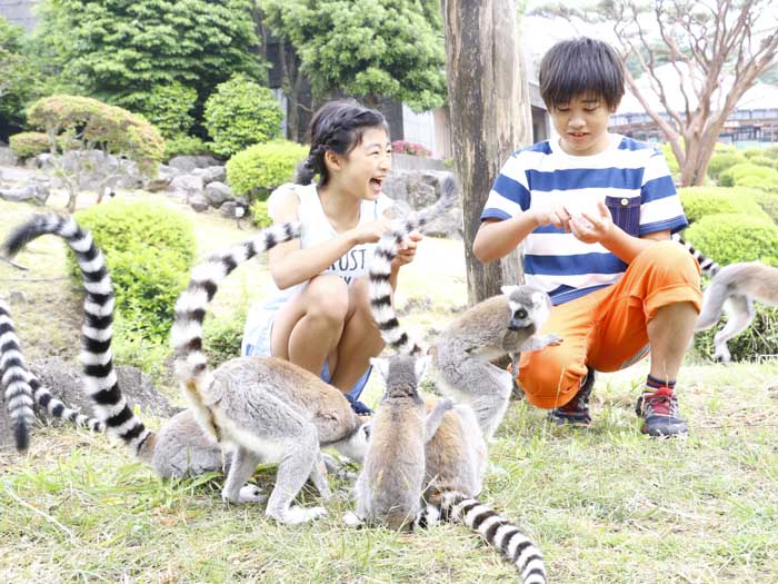 伊豆シャボテン動物公園では、クジャクやリスザルが放し飼いされているほか、多くの動物たちが檻や柵など隔てのないエリアにいるため、ごく間近で見たり接したりすることができる距離感ゼロのふれあい動物園です。展示スペースにはエサ(有料)が置かれており、エサやり体験も楽しめます。 ボートに乗って動物たちの住む島々を巡る動物ガイド「アニマルボートツアーズ」は、国内で唯一の展示方法で、ここでしか体験できません。