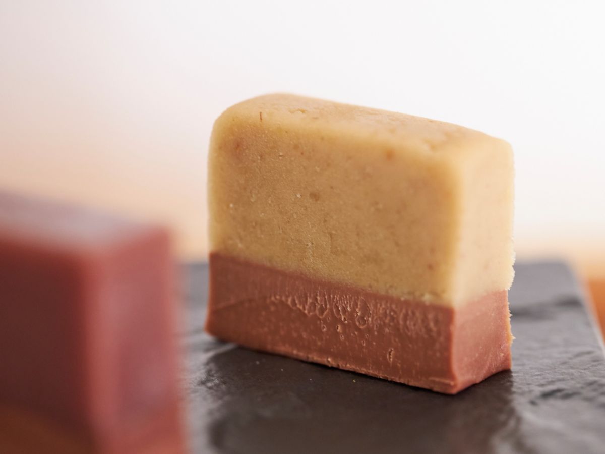 こちらがお目当ての「羊羹ショコラ」。蒸し羊羹と生チョコレート(ガナッシュ)を合わせて2層に仕上げたひと品です。