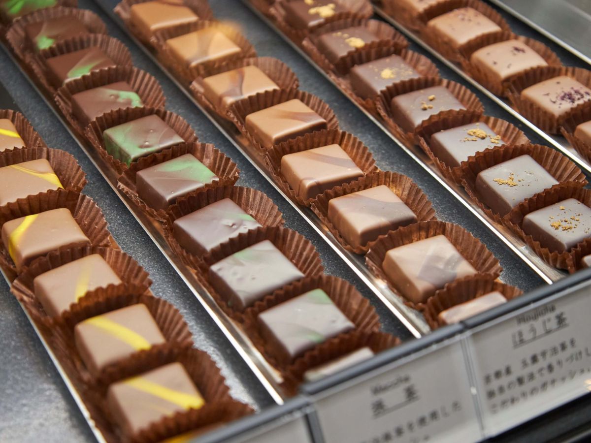 和の素材を使用したオリジナルのショコラも要チェック。柚子や日本酒をはじめ、ぶどう山椒や黒糖、奥能登の珠洲塩を使った「奥能登」などこだわりの味が楽しめます。