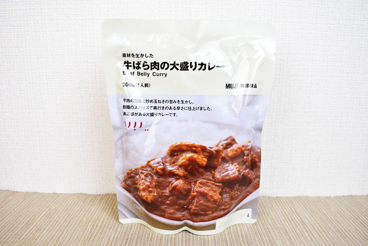 第3位は、大満足のボリューム感が好評の「素材を生かした 牛ばら肉の大盛りカレー」300g 350円。無印良品のレトルトカレーといえば、1人前180gのものが一般的ですが、こちらはなんと300gの大盛りです!