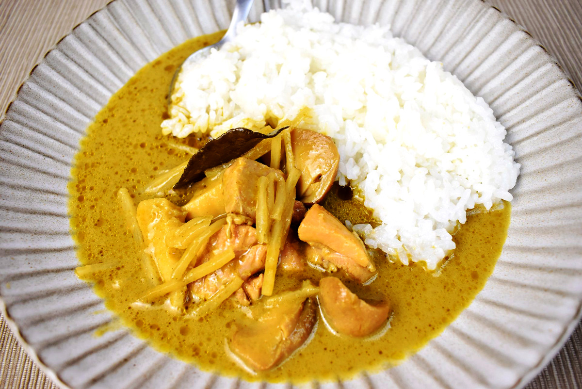 ひと口食べてみると、レモングラスやこぶみかんの葉のさわやかな香りのなかに、青唐辛子のツンとした辛さが際立っていて、日本風のアレンジ一切なしの刺激的な辛さ! とっても辛いのですが、ココナッツミルクのマイルドさもあってか食べやすく、どんどん食べ進めてしまいます。