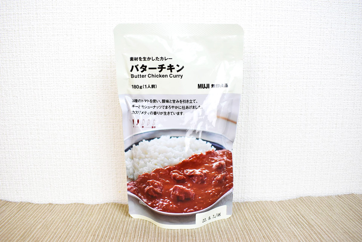 第1位は、無印良品のレトルトカレーファンのなかでも、根強い人気を誇る「素材を生かしたカレー バターチキン」180g 350円。2009年の発売以来、4度のリニューアルを重ねたという現在の商品は、3種のトマトで酸味と甘みを引き立て、ギーとカシューナッツでまろやかに仕上げた逸品です。
