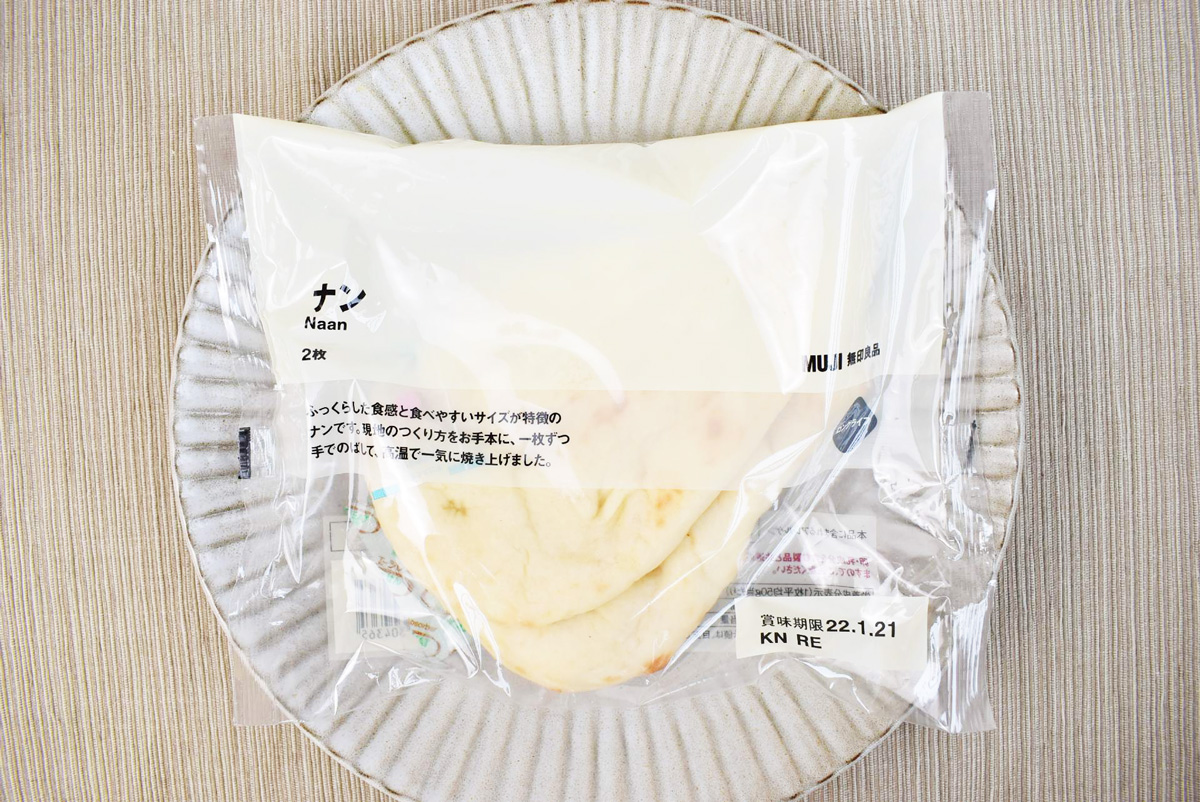 無印良品のレトルトカレーは、“日本のごはんに合う”ように開発されていますが、バターチキンといえば、やっぱりナンでしょ! ということで、今回は「ナン」2枚190円とともにいただきます♪