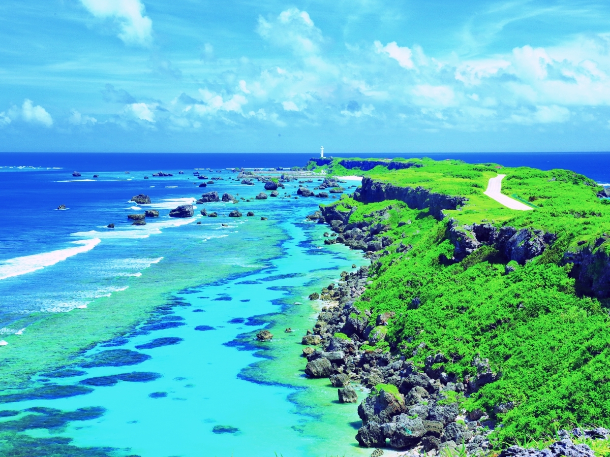 「東平安名崎(ひがしへんなざき)」は、宮古島の東南端に延びる約2kmの細長い岬。先端に立つ灯台は、日本に約3000ある灯台の中で、登ることができる16の灯台の1つであり、「日本の灯台50選」にも選ばれています。