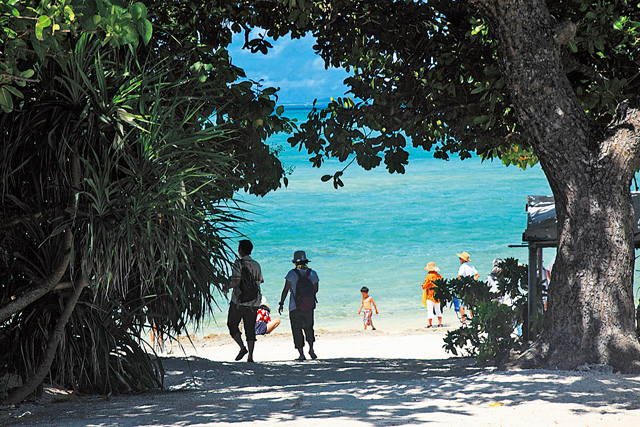 久米島の東方の沖合に浮かぶ砂州「ハテの浜(はてのはま)」。真っ白な砂浜が広がり、その美しさは東洋一とも称されています。泊フィッシャリーナからは船で約20分。ホテルや渡船業者による各種渡船プランが、3500円~(要予約)で用意されています。海水浴やシュノーケリングはもちろん、絶景のビーチでは流木や貝殻などを探すのも楽しい!
