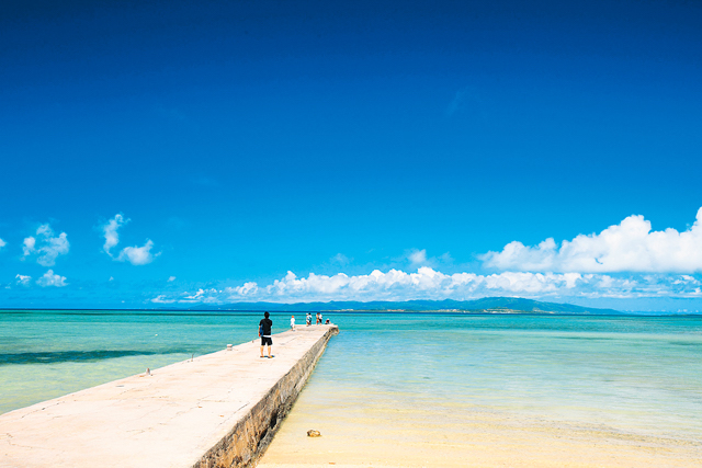 「与那覇前浜(よなはまえはま)」は、東洋一美しいと絶賛される、人気のビーチです。約7kmにわたって続くサラサラのパウダーサンドと、目の前に広がる海のグラデーションは、沖縄屈指の美しさ! 浜からは、来間大橋や来間島も見渡すことができますよ。