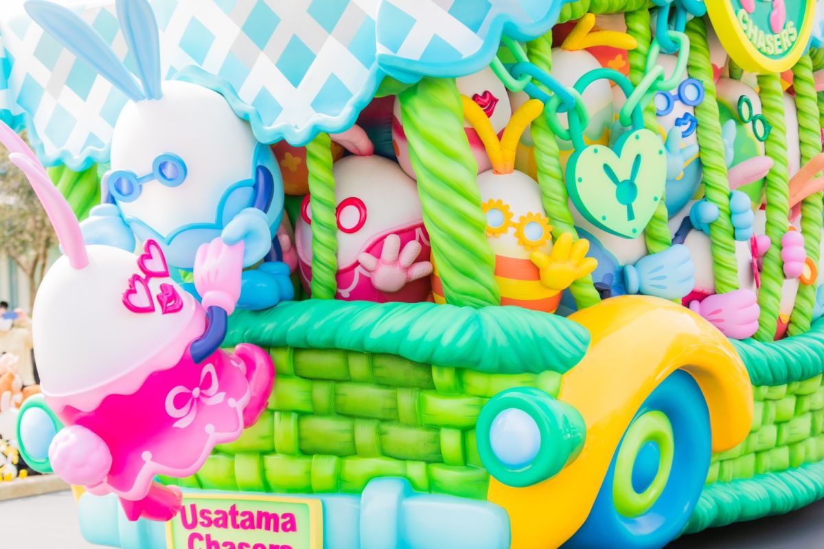 フロートの後ろの大きなイースターエッグからうさたまがどんどん飛び出してる~。