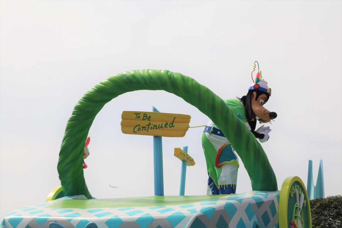 今回のパレードではミッキーのコスチュームのデザインを一新。うさ耳の部分にくるくる回る飾りがついていたり、紫とグリーンを基調にしているので、ちょっとバズ・ライトイヤー風?な感じに。ここにも注目してみてくださいね。