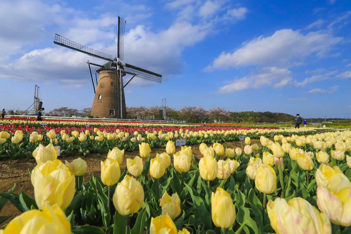 2022年4月17日(日)まで、印旛沼湖畔の佐倉ふるさと広場で開催される「佐倉チューリップフェスタ2022」。2022年は昨年よりも多い約80種類55万本のチューリップが、オランダ風車を背景に、彩り豊かに咲き誇ります。