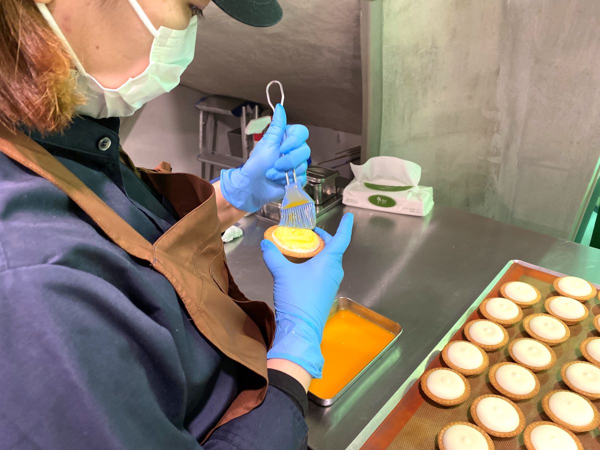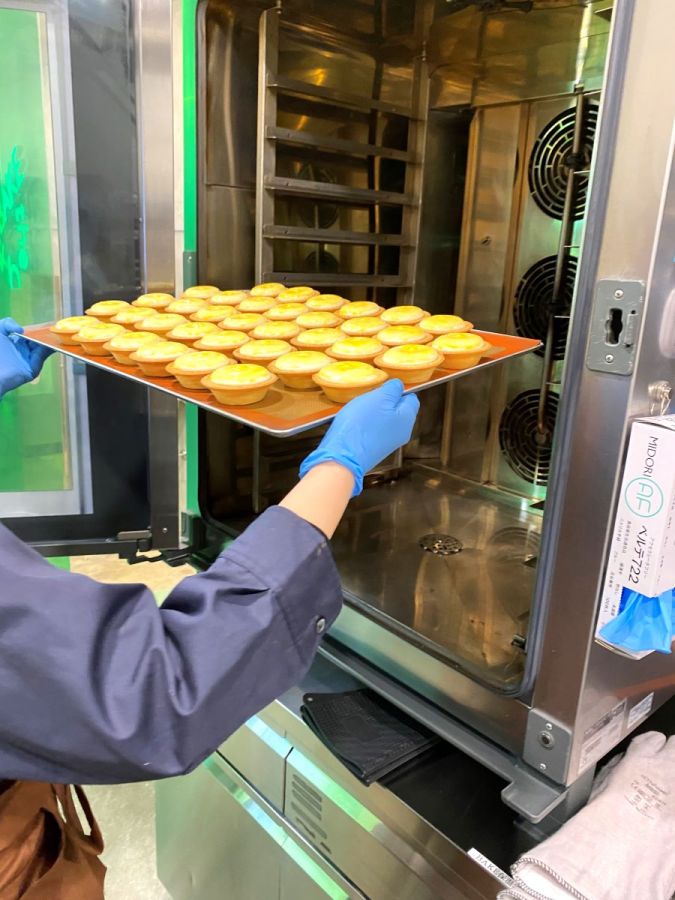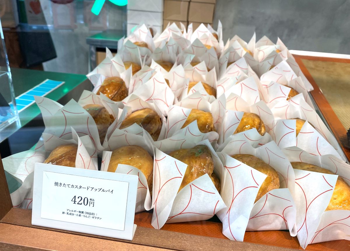 「BAKE INC.」の特徴は、「焼きたてチーズタルト」や「焼きたてカスタードアップルパイ」など一部の商品をお店に備えたオーブンで焼き上げ、焼きたて商品を提供しているということ。一気に焼きすぎないように調整しているため、いつお店に行っても焼きたてを買うことができます。