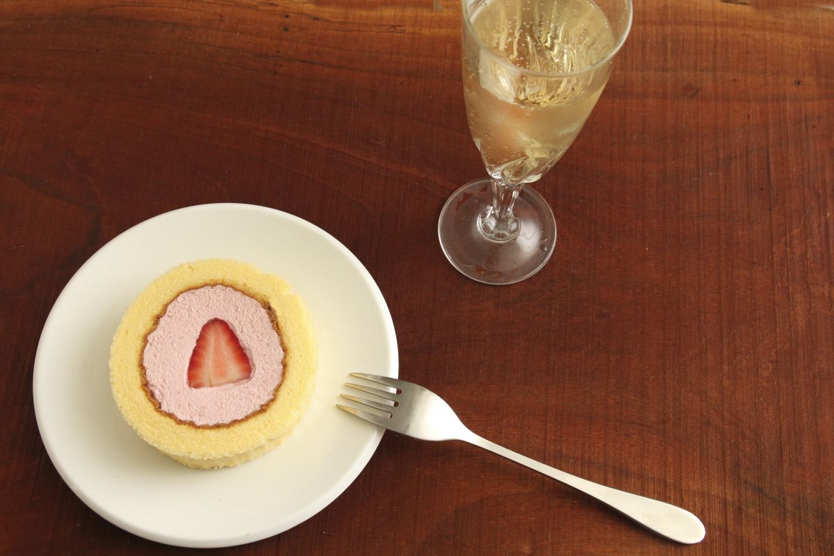 紅茶やコーヒーと食べても、もちろんおいしいけれど、スパークリングワインと合わせるのもおすすめ。イチゴとシャンパンが合うのだから、いちごロールケーキとだって合うはず。シャンパンはハードルが高いので、スペインのスパークリングワイン、CAVA(カヴァ)あたりが手軽でいいかも。