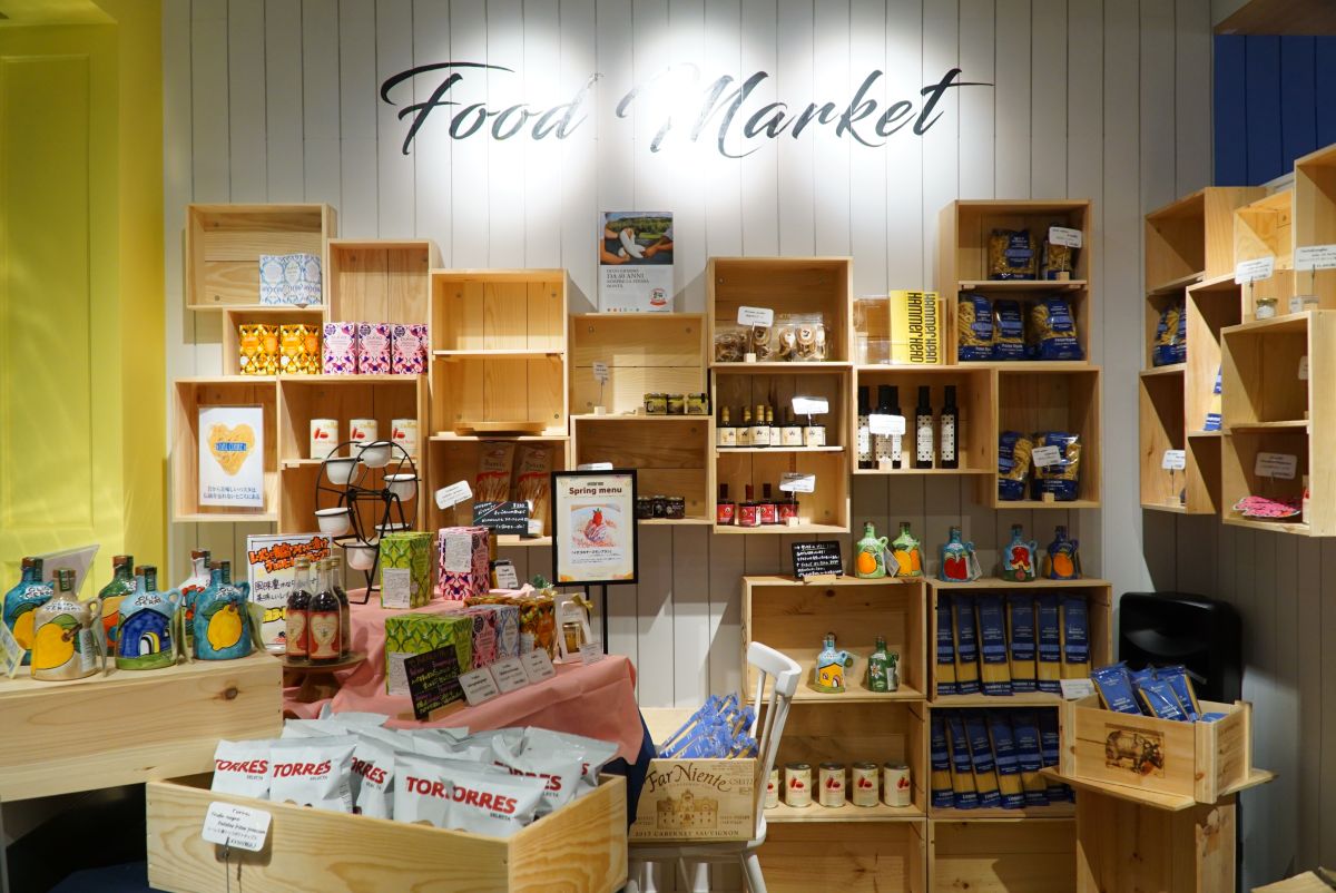 お店の入口にはマーケットを併設していて、イタリアから仕入れたチーズはもちろん、ほかではなかなか手に入らない本場のパスタ、オリーブオイルなどが揃っています