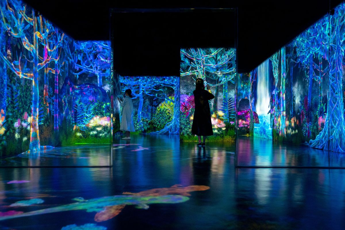 最新のテクノロジーを駆使したデジタルコンテンツの開発などを行う「チームラボ」と共同で製作した、今までにない未来の体験空間を提供してくれる展覧会です。早速足を踏み入れると、目の前に神秘の森が広がります…!