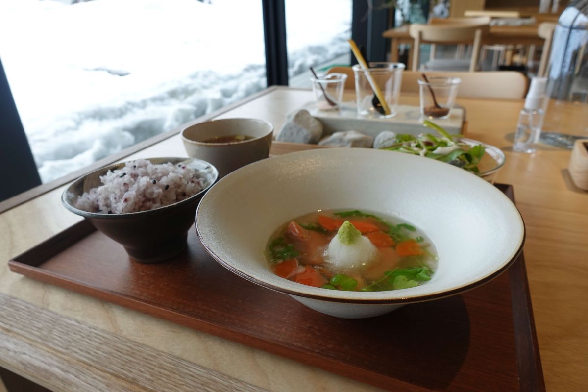 ディナーは全部で6皿のコース。白馬や周辺地域の旬の食材そのもののおいしさが引き出された料理となっていて、自然との繋がりを感じることができます。