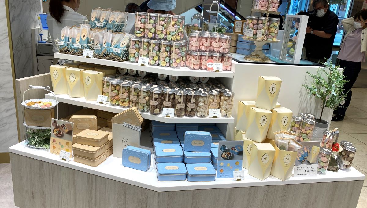 驚くのはその扱う商品の多さ。カラフルなメレンゲ、クッキーの入ったアソート缶など、色とりどりな商品がずらりと並びます。