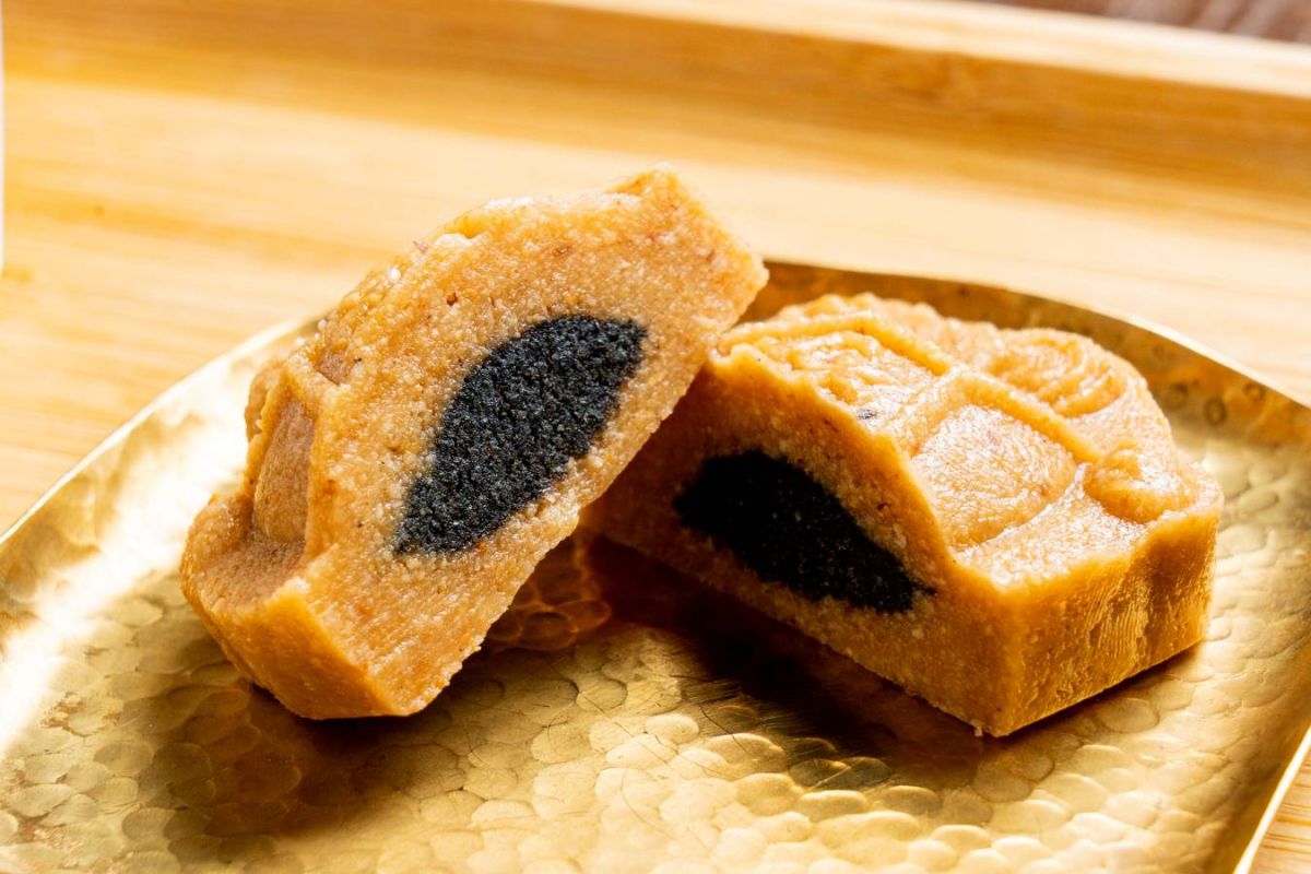 「李亭香」といえば、亀のお菓子「平安亀」が大人気。甲羅に「寿」の文字が刻まれたそれはなんともめでたく、レトロな赤い箱も相まって誰かにプレゼントしたくなる出立ち。そして、一口食べるとピーナッツ×黒ごまの滋味深い味わいが口いっぱいに広がります。