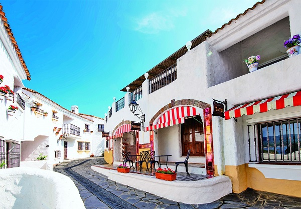 伊勢志摩には、5つの異なる地中海エリアの気分を味わうことができるリゾートがあるんです。それが「Village&Hotel 志摩地中海村」。白壁のかわいらしい建物にはカラフルなお花が飾られ、敷地全体がとても華やか!歩くだけでわくわくテンションがあがります。