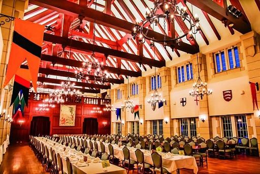 天井が高く広々としたダイニングも圧巻!こちらではイギリスのトラディショナルディナーを味わうことができます。まるで本当に中世のイギリスに迷い込んでしまったよう。非日常体験をしたい方にはぴったりですね。