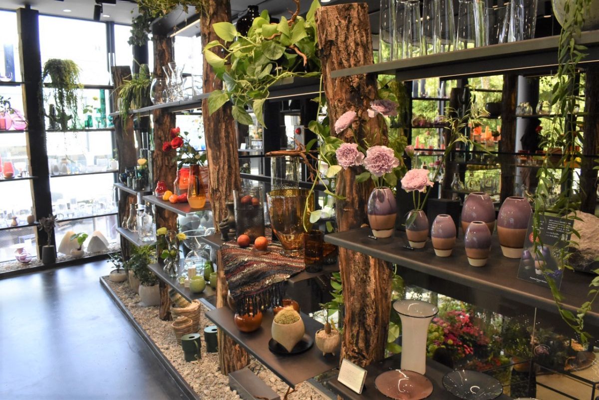 この「フラワーベースギャラリー」は花のプロが国内外から厳選した「花をより美しく見せる花瓶」が約1000種類も並んでいます。