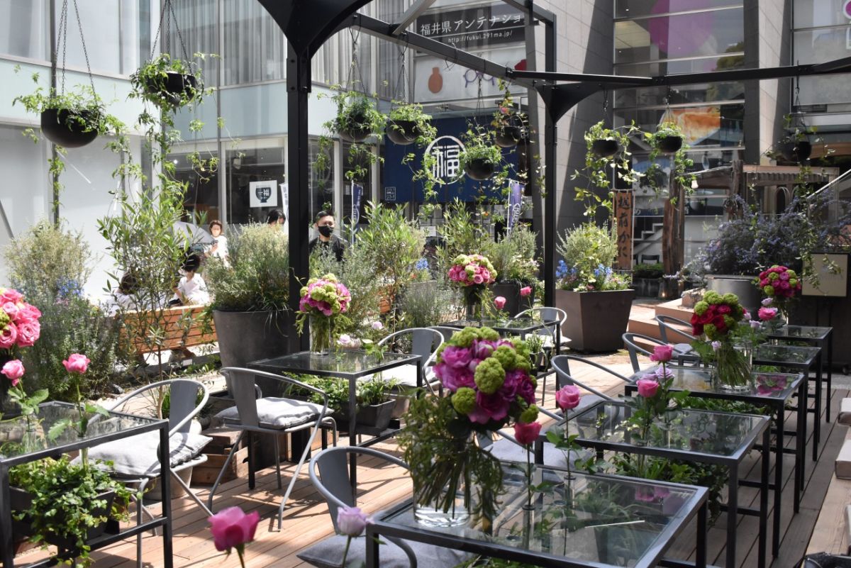 テラス席もお花やグリーンがふんだんにあしらわれていて、春・秋には人気席になりそうな予感。