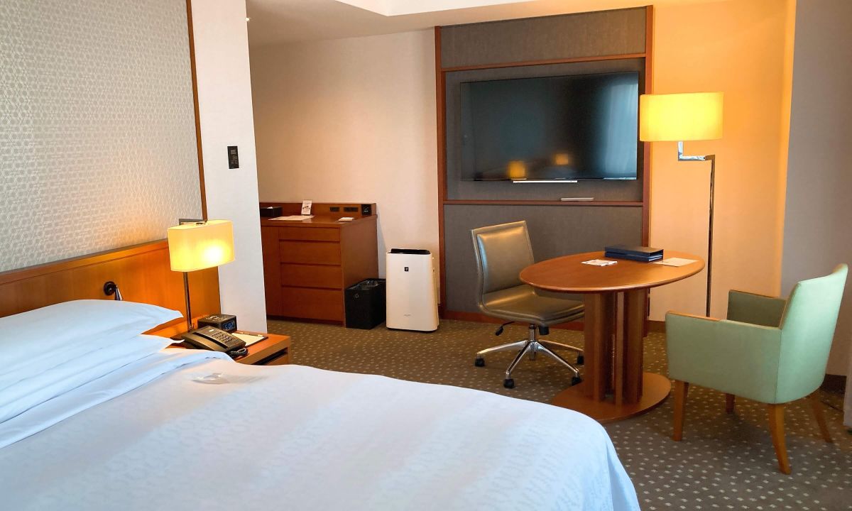 部屋には大きなデスクと椅子が2つあり、食事やパソコンでの作業をするのにも快適。私は窓向きの席に座って横浜の景色を眺めながら仕事をしていました。