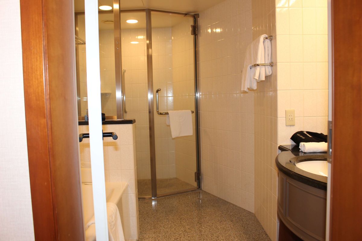バスルームは、シャワールームと浴槽が別になっていてとても広々!浴槽は足を伸ばして入れる広さです。