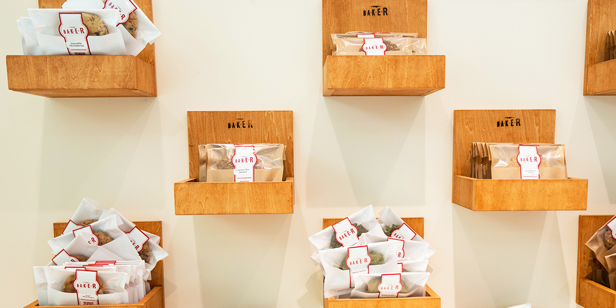 入り口の壁にずらっと! 種類豊富なヴィーガンクッキーたち