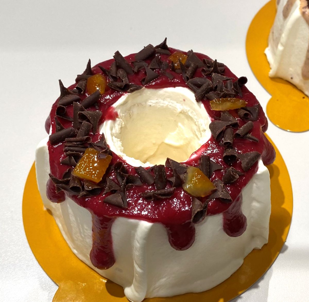 銀座店限定で販売されているのは2品で、1品目は「カシスオレンジクリームシフォンケーキ」1000円です。カシスオレンジソースにチーズでコクを加えた、甘酸っぱさが特徴の逸品。